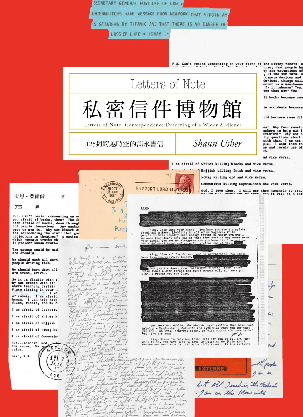 看完書背簡介就買了,很有趣的書!書裡收錄了125封書信,分別來自不同的時空與人,有達文西的自薦求職信、開膛手傑克的恐嚇信、鐵達尼號即將沉沒時發給鄰近船隻的求救電報等。